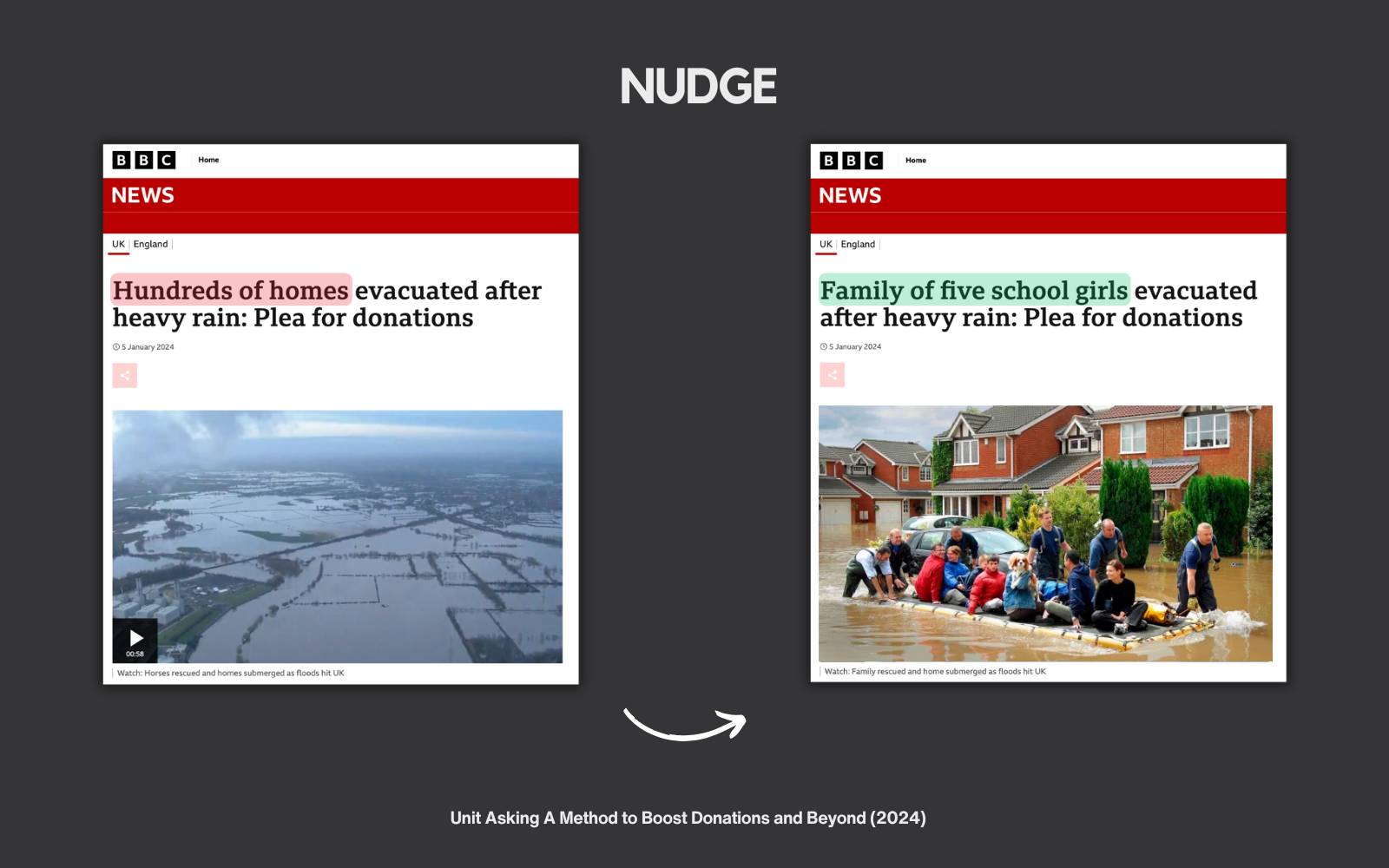 Unit Asking Read online Which of these articles encouraged Brits to donate more? It's the one on the right. Research by Christopher Hsee¹ found that donors gave nearly twice as much when first asked to consider the needs of a single person before being asked to donate to a larger cause. This “unit asking” strategy made contributions feel more reasonable and personal. And it explains this² rather bizarre study: The study looked at the success rate of donation requests on the...