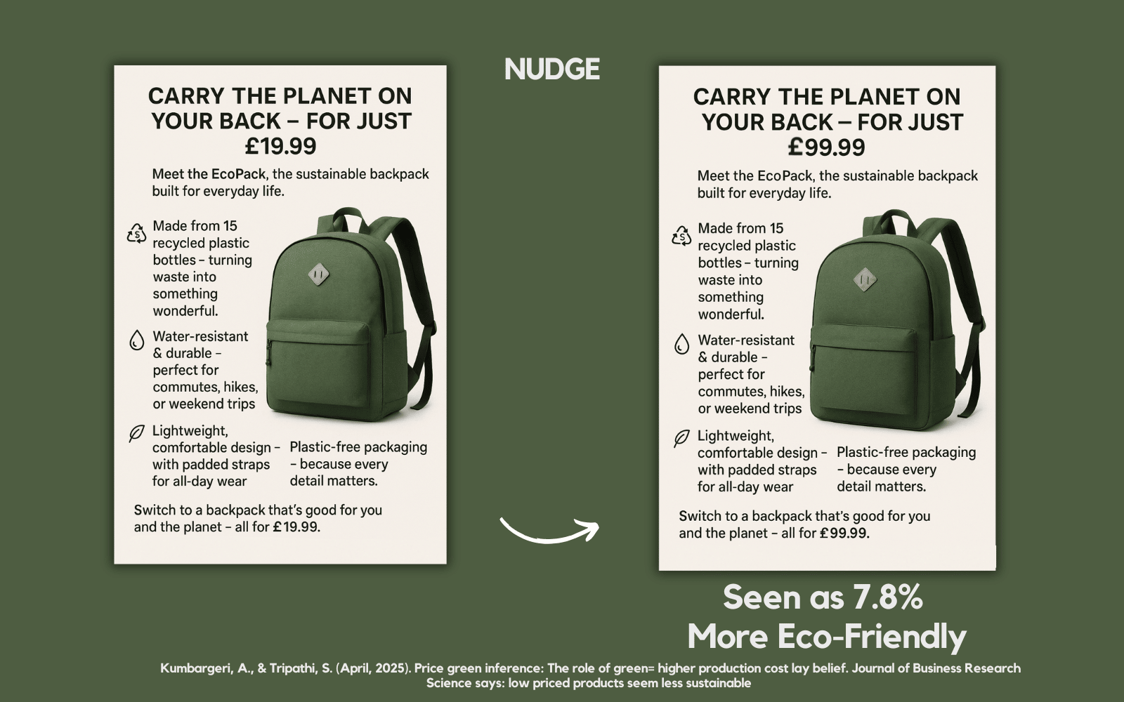 Veblen Effect Read online Last week, I wrote about how Blue-Emu successfully sells pain relief cream (that doesn't actually cure pain). It indicated that perception trumps reality and reminded me of this study 👇 Rory Sutherland described this eloquently in a recent talk, saying: “I don’t have a $0.79 headache—I’ve got a $3.99 headache!” It's not just painkillers that benefit from higher prices. Eco-products do too. Research¹ cited in the brilliant Science Says measured sales of sustainable...